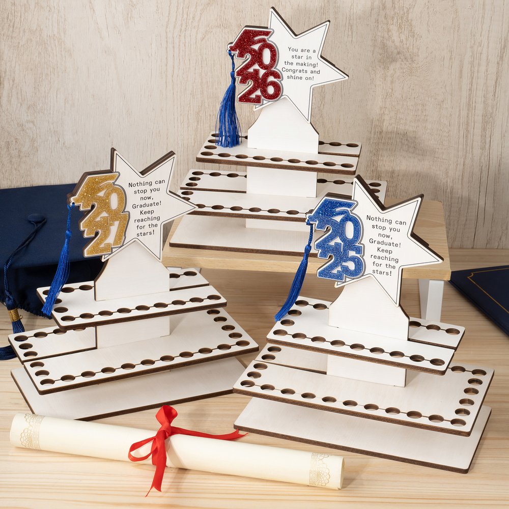 This innovative graduation season cake-style money rack has a better overall shape than the previous money rack. It has been upgraded from the original round money rack to a larger square money rack. You can customize it with your name or your graduating friend's name and custom text, making it an exclusive gift to commemorate their special milestone.