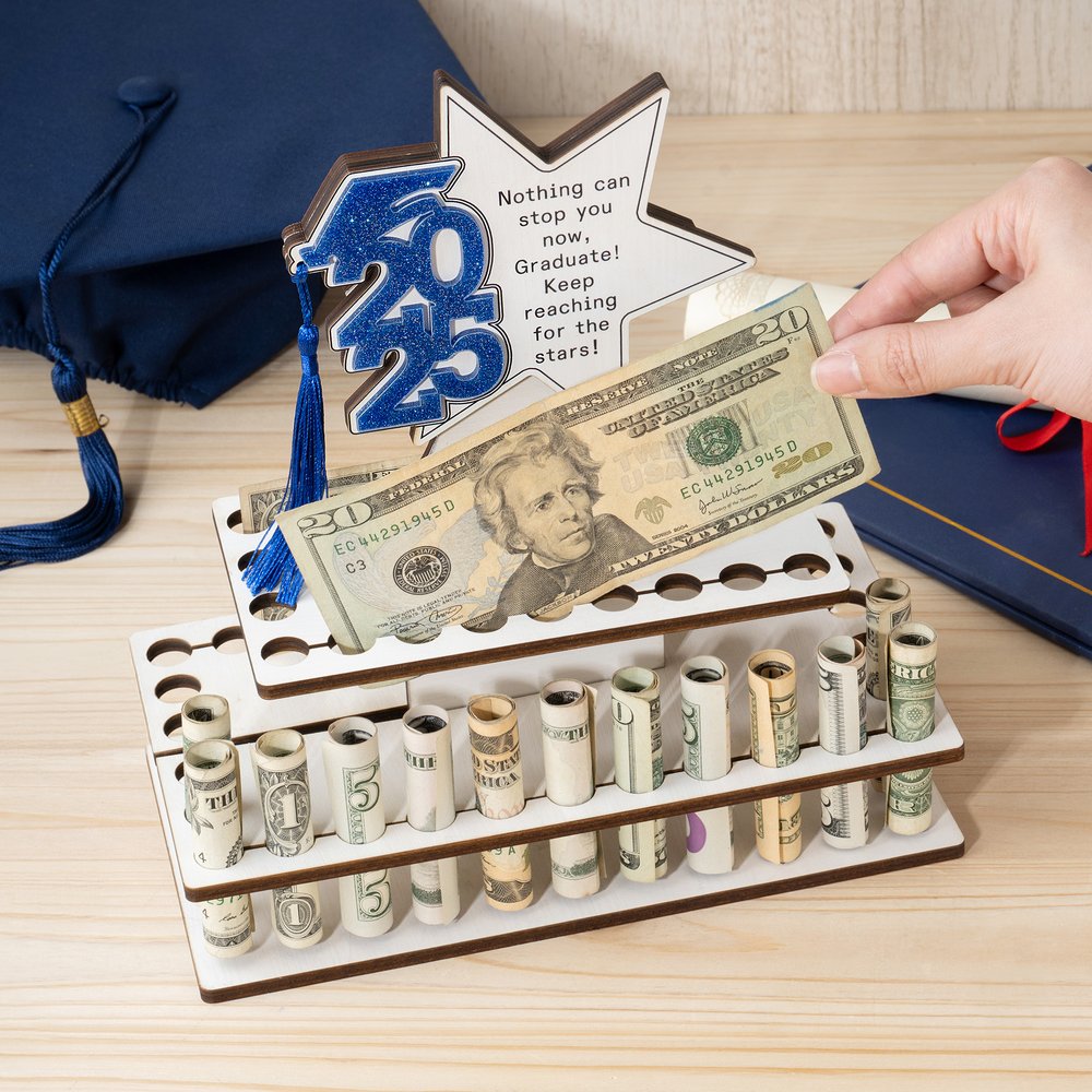 This money rack can not only be used as a monetary gift during the graduation season but also as a decoration at the graduation party. Whether celebrating high school, college, or other milestones, the rack can be customized to the recipient's preferences, making it a thoughtful and personalized gift.