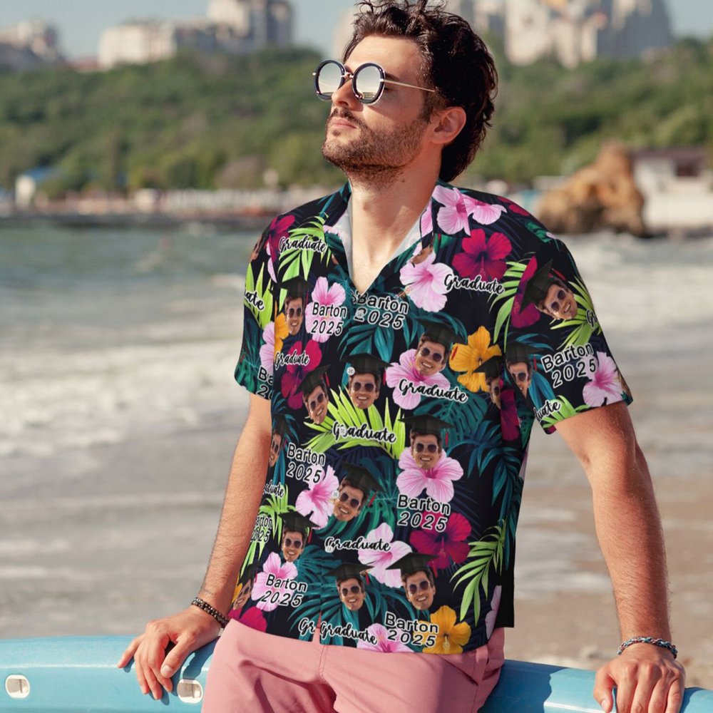 You can incorporate your personalized photos into shirt design and print your exclusive name and graduation year on the shirt, so that every inch of the shirt will leave a unique memory. At the same time, we have carefully prepared 50 tropical patterns for you to choose from, combining bright colors with classic Hawaiian elements, allowing graduates to fully feel the blessings.