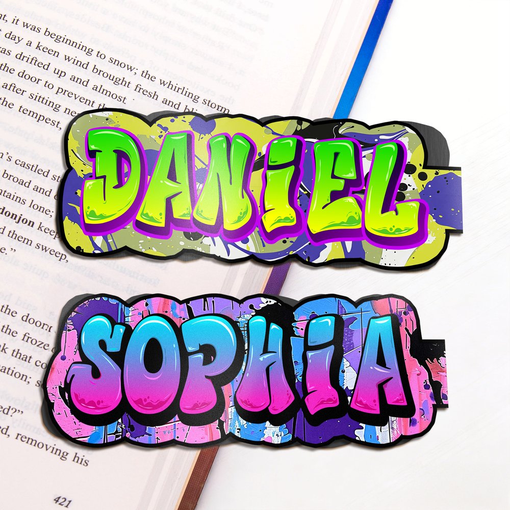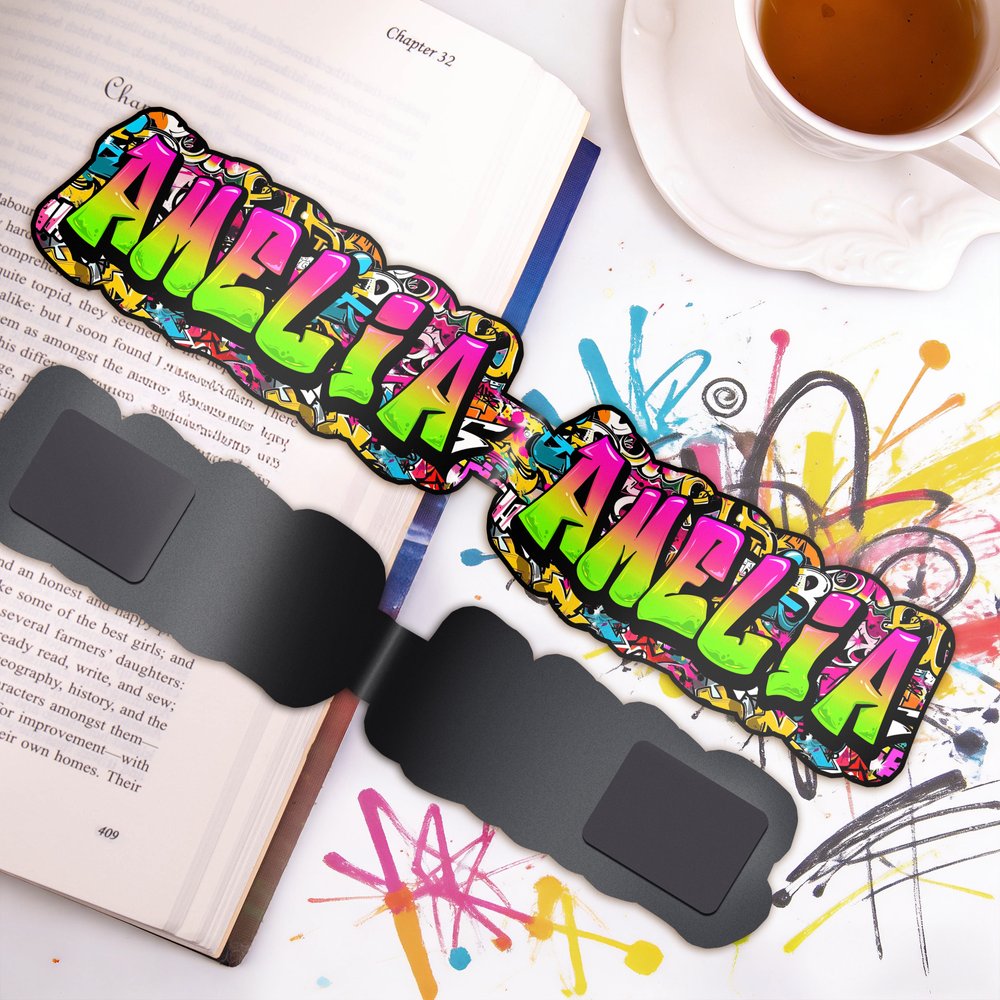 Personalized Graffiti Style Magnetic Bookmark Clip with Name Birthday Back to School Gift for Bookworms