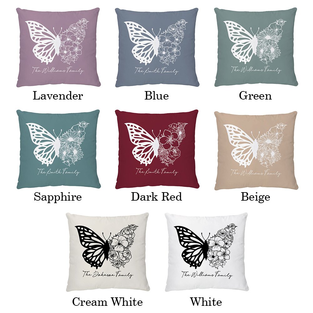 The unique design of half a butterfly and half a flower, with clear printing and a variety of colors for you to choose from. You can also customize the name on the pillow. It is a good choice to put in the bedroom, sofa, study room, or movie room.