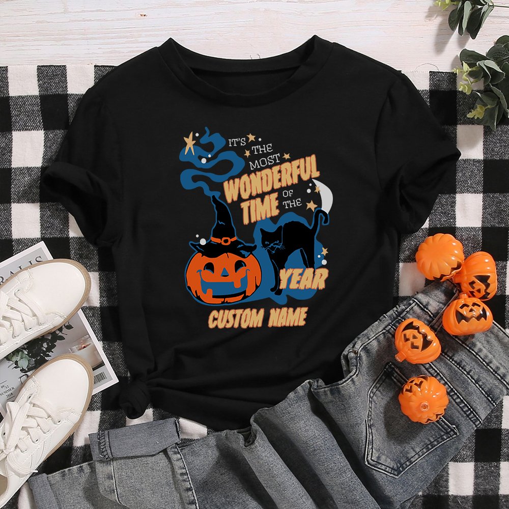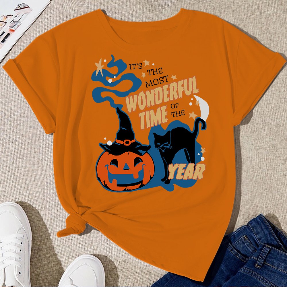 This pumpkin and cat funny top with designs of funny letter printing "It's The Most Wonderful Time of The Year" and horror characters graphic, fun for Halloween festivities, it must be will exactly what you expected.