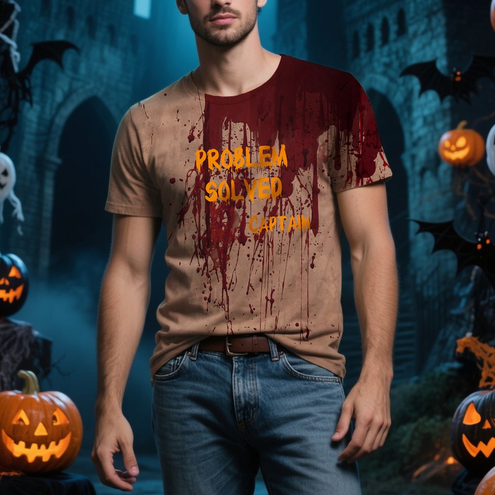 The T-shirt is designed for versatility, suitable for a range of Halloween-related activities. Whether you're dressing up for a themed party, participating in a street parade, or simply want to show off your festive spirit, this T-shirt is the perfect addition to your wardrobe. It pairs well with jeans or casual trousers, allowing you to create a complete Halloween look with ease.