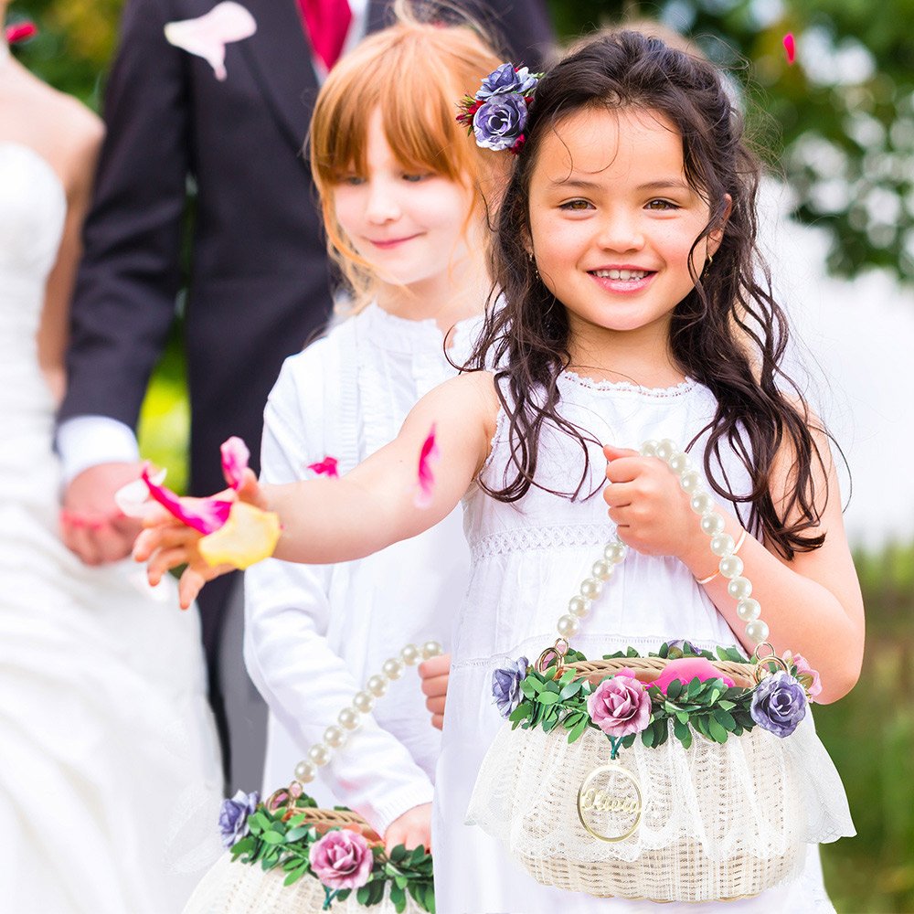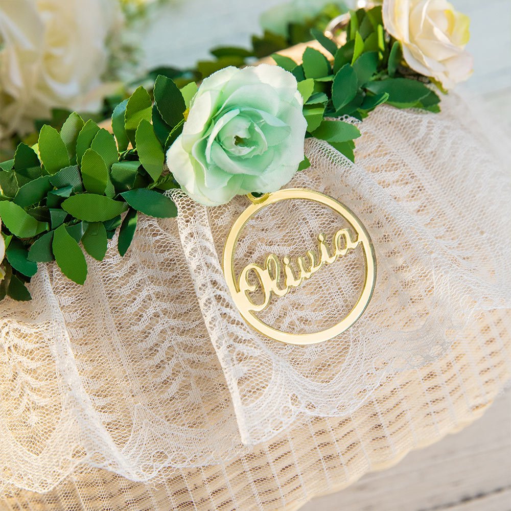 Personalize your flower girl basket with a name of your choice, adding a unique and personalized touch that will make your little one feel extra special. The name can be elegantly displayed on a beautiful charm tag, ensuring that your flower girl's basket stands out as a true reflection of her role in your special day.