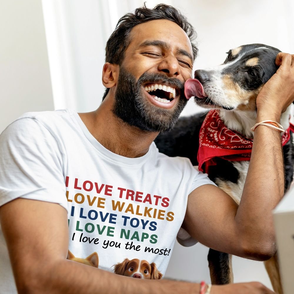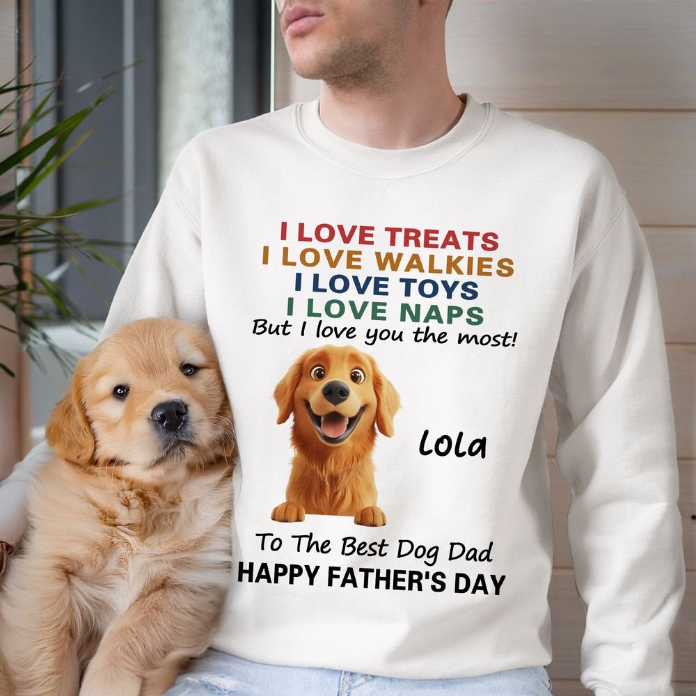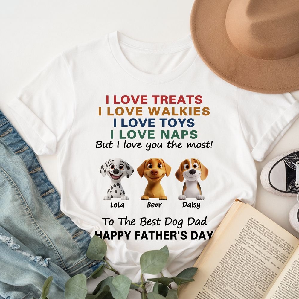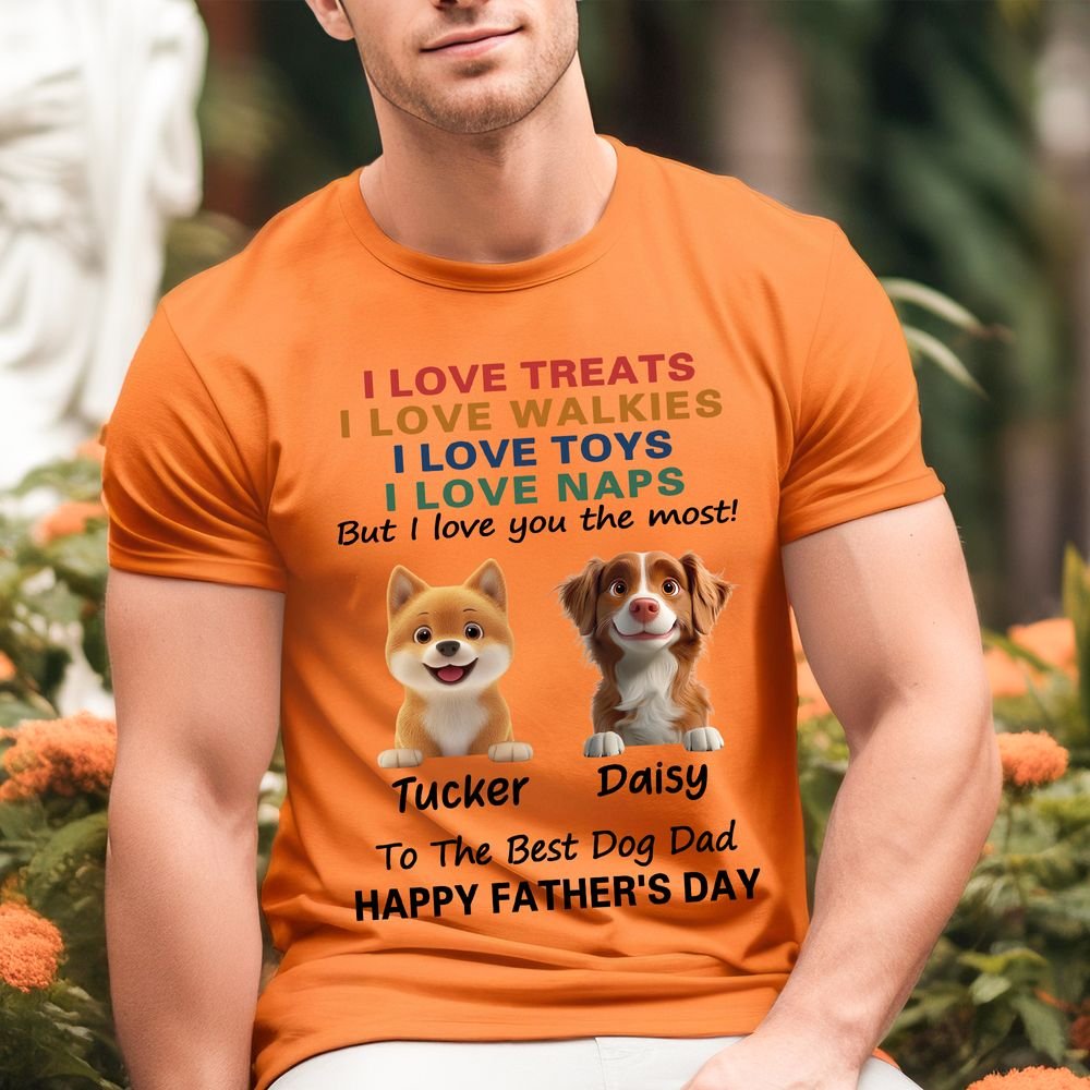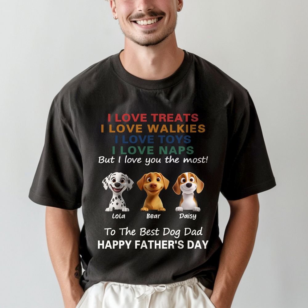 This garment features 1-4 cute cartoon pet dog patterns, offering a wide variety of dog breeds to choose from. This allows you to select the most suitable design for your beloved pet and add a personalized name to each dog, enhancing the uniqueness of the garment. Additionally, the garment is adorned with multiple text phrases such as 'To The Best Dog Dad' and 'Happy Father's Day,' which deeply convey your care and love for your father.