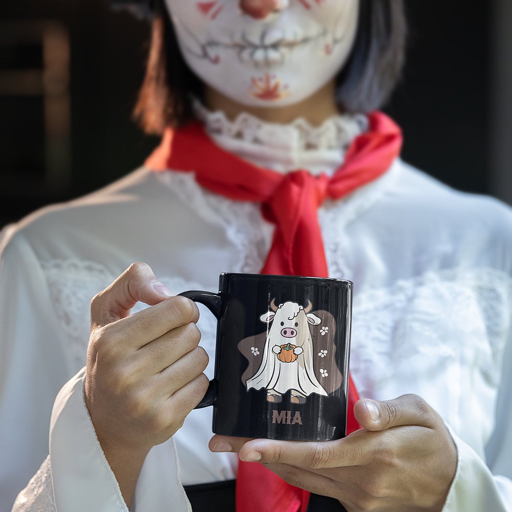Make this Halloween special for your loved ones with our personalized happy Halloween cow ghost mug. This mug is an ideal gift for cow lovers, friends, and family members who love cow elements. With its customizable option to add the recipient's name, you can create a genuinely one-of-a-kind Halloween mug that will be cherished for years to come.