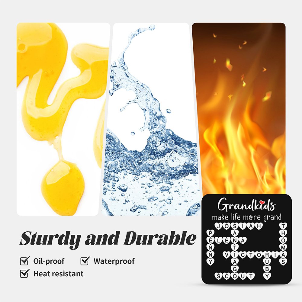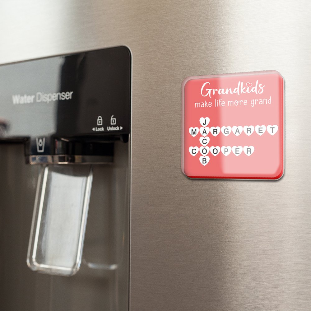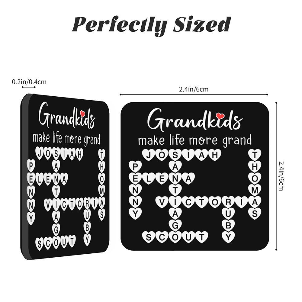 Our fridge magnets are printed with warm sayings, such as "Grandkids make life more grand," etc. You can also customize them according to your preferences. In addition, you can enter up to 20 the name of each member of the family to automatically arrange and generate creative crossword puzzle patterns, making the whole work not only playable but also a symbol of family love. Six different refrigerator magnet colors make your choices more diverse.