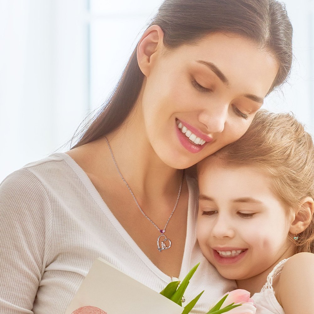 The necklace offers the feature of adorning two birthstones, symbolizing the mother and child. This thoughtful addition of gemstones not only enhances the aesthetic appeal of the necklace but also makes it personally significant to the wearer.