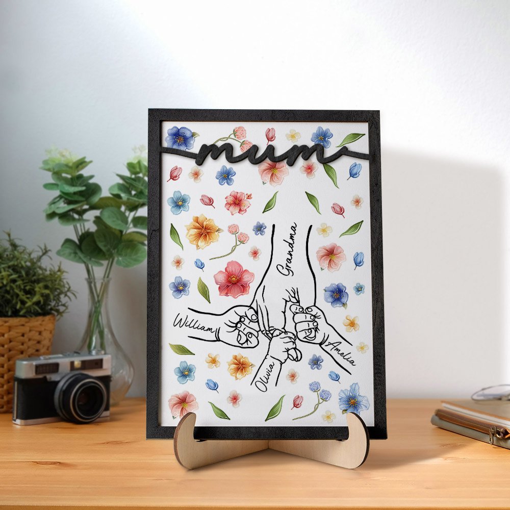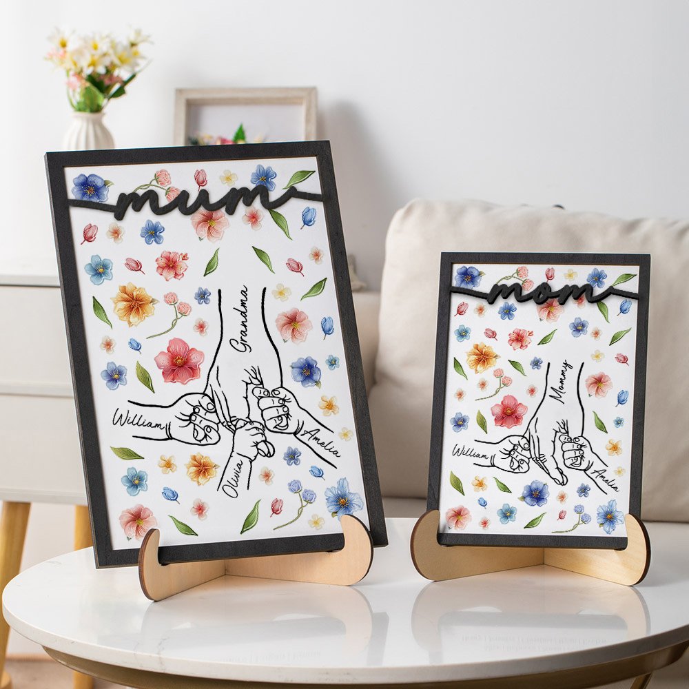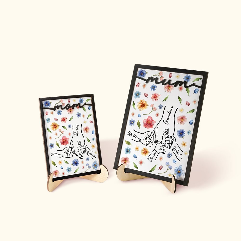 This wooden plaque is meticulously crafted from high-quality wood, ensuring durability and a timeless look. The intricate details of the mother and child hands, along with the flower illustration, are expertly printed to create a stunning visual effect.