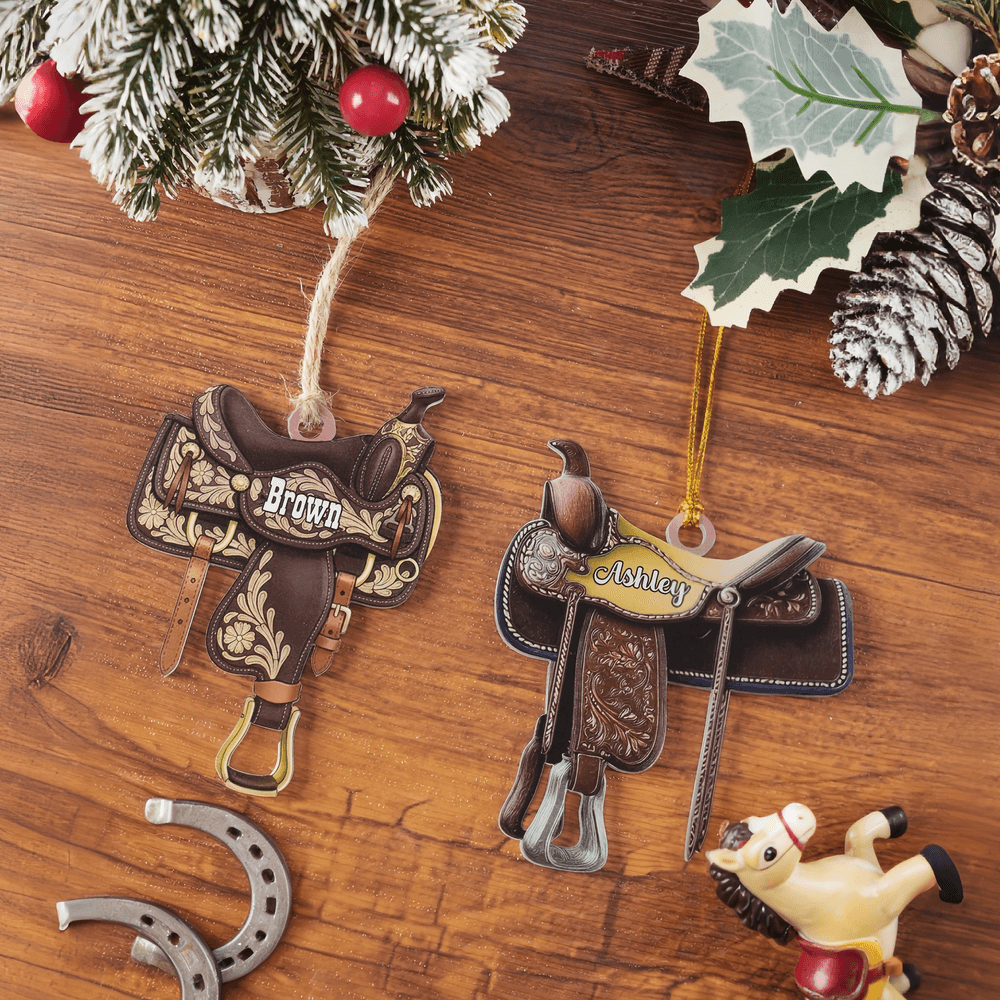 Crafted from sturdy, high-quality materials with a smooth, leather-like finish, the ornament retains its realistic saddle details while being lightweight enough for tree hanging. It’s built to resist wear, ensuring the custom name and saddle design stay crisp through years of holiday use.
