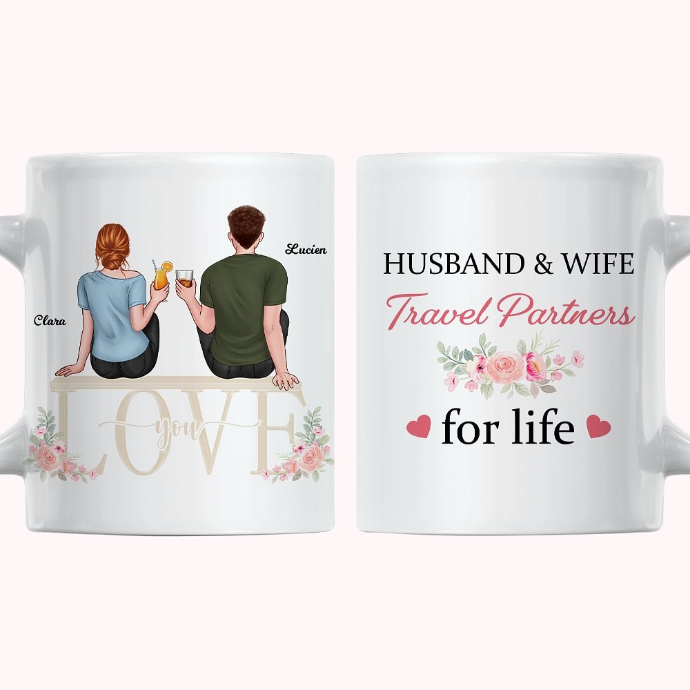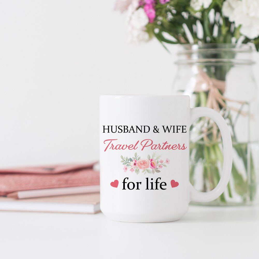 Personalized Husband and Wife Travel Partners for Life Couple Cheers White Ceramic Mug Couple Gift 11oz or 15oz