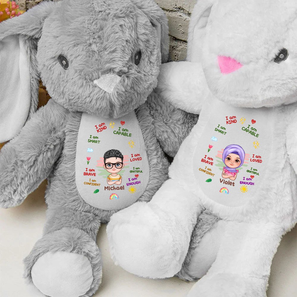 This Easter bunny toy has a unique customization function, which can add the child's name, and also comes with positive words such as "I am KIND" and "I am SMART" and cute cartoon characters, making it a unique and exclusive gift.