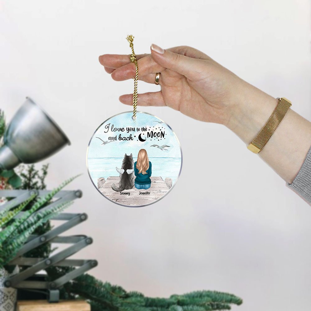 Personalized I Love You to the Moon and Back Round Acrylic Hanging Ornament with Seagull Background Christmas Birthday Gift for Dog Lover