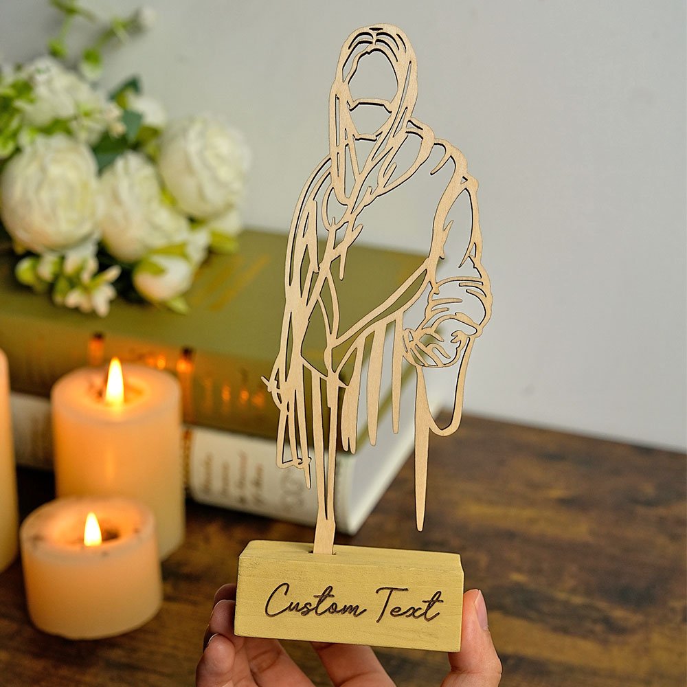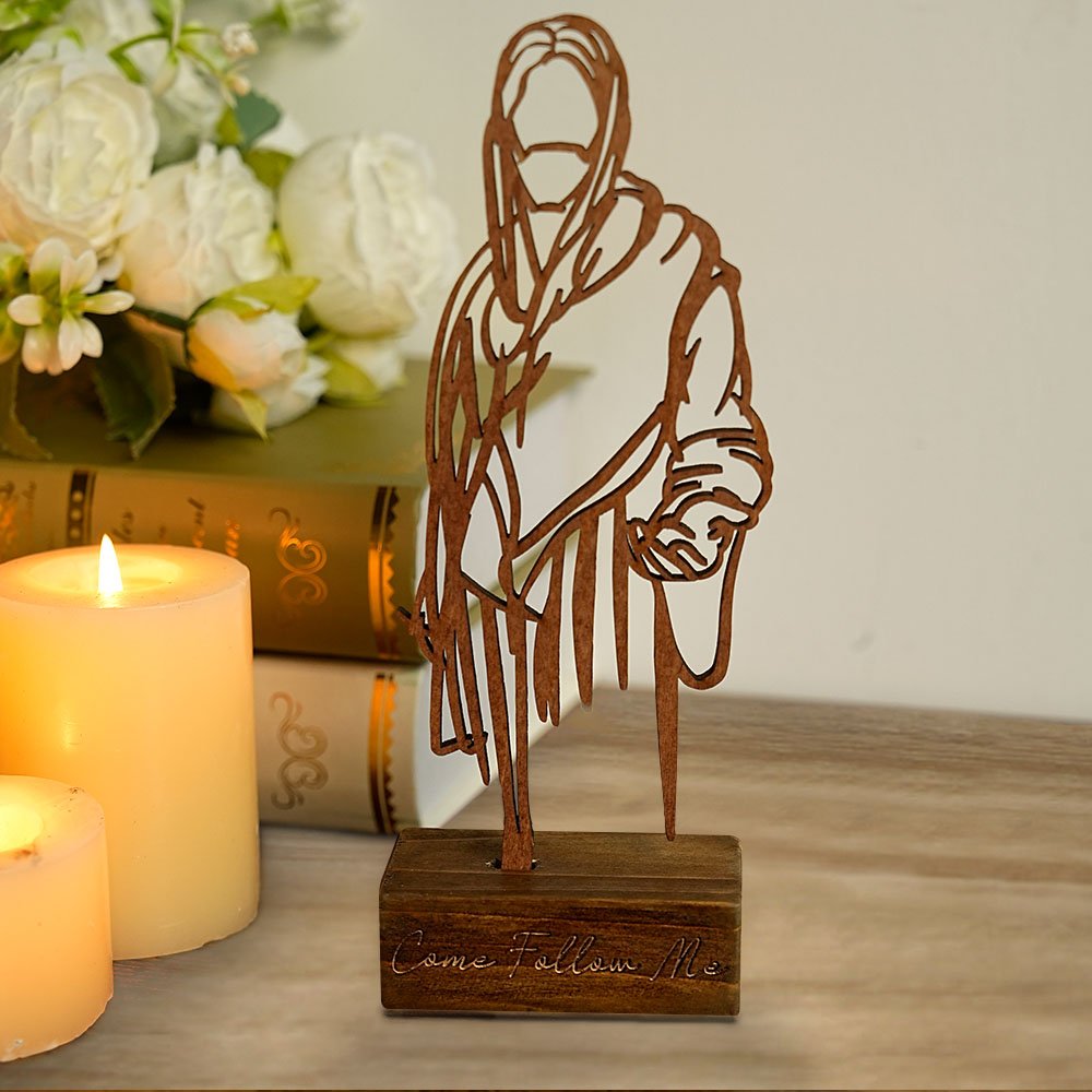 Our Christ-centered wooden plaque features a simple Jesus art with outstretching his left hand in a welcoming gesture, exuding a solemn and sacred atmosphere. The customized text on the wooden base serves as a powerful visual reminder and brings you confidence and encouragement.