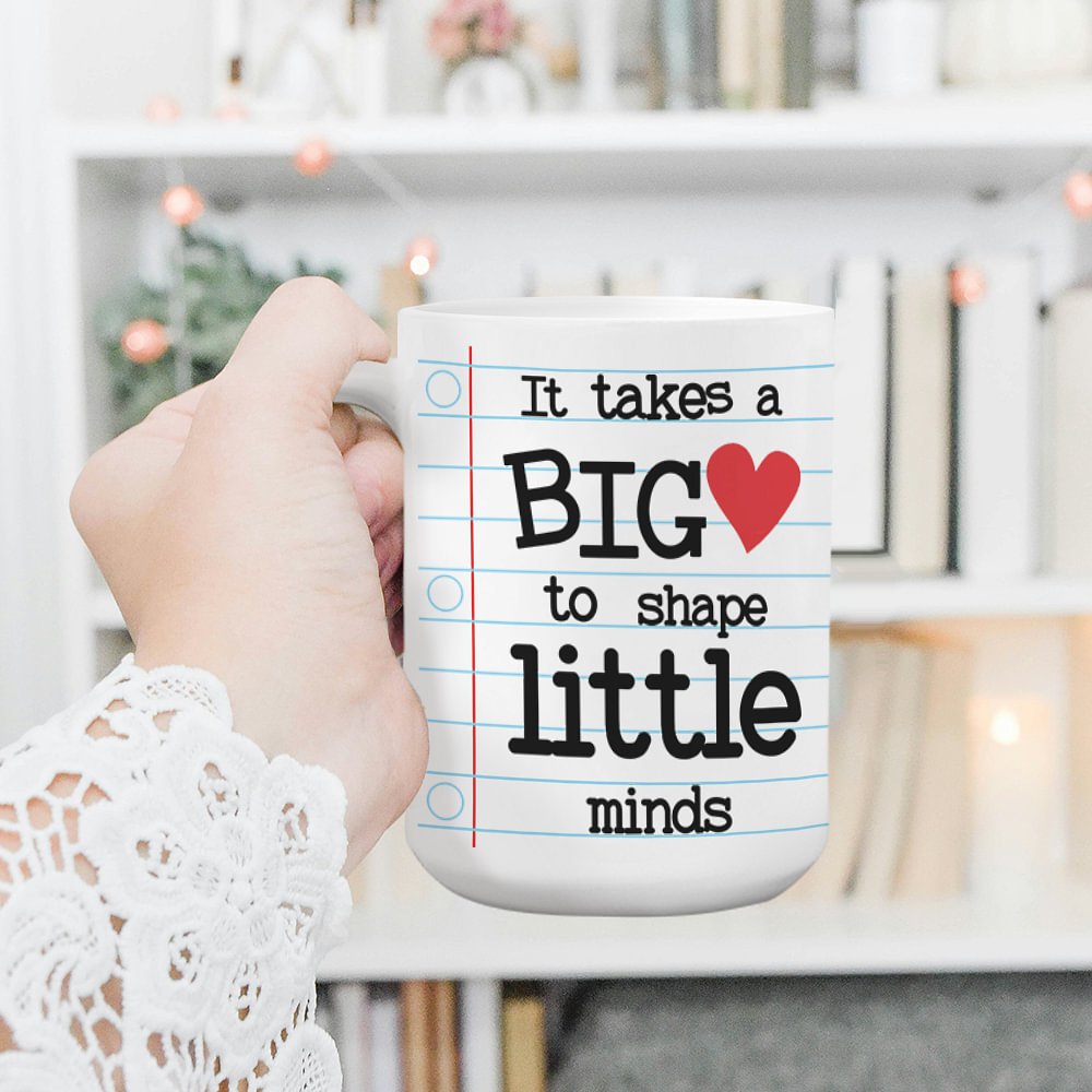 Personalized It Takes A Big Heart To Shape Little Minds White Ceramic Coffee Mug with Title and Name Appreciation Back to School Gift for Teacher