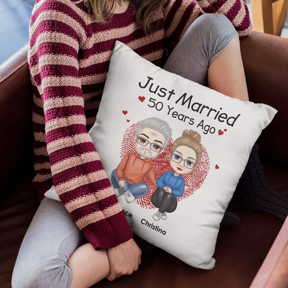 Personalized Just Married 50 Years Ago Throw Pillow Cover Valentine's Day Anniversary Birthday Gift Bedroom Home Decor