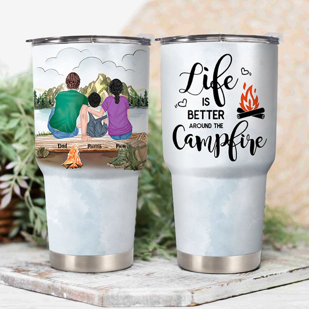 Personalized Life Is Better Around The Campfire Family with Pets Camping 30oz Tumbler Anniversary Gift Birthday Gift for Family Couple
