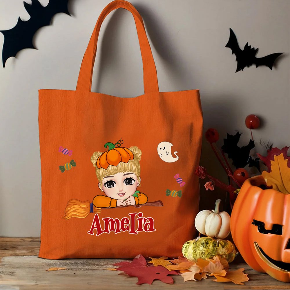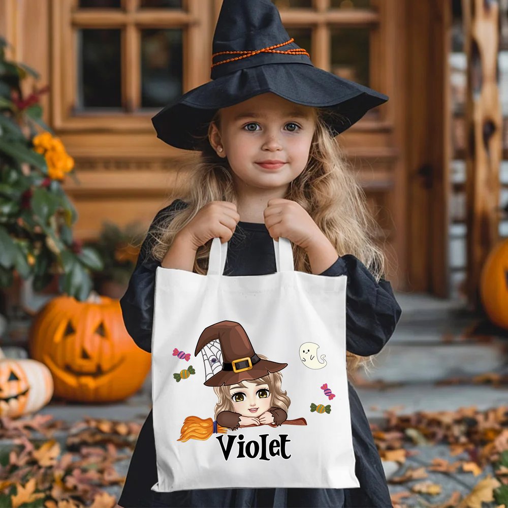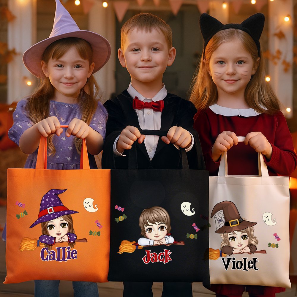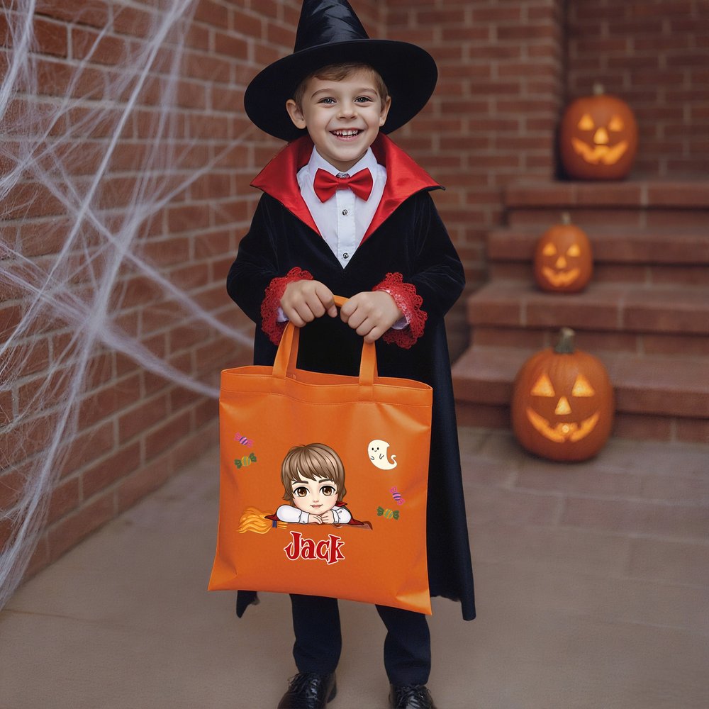 Featuring Halloween motifs with elements like magic brooms, ghosts, and candy, this design also allows customization with cartoon characters and names. The overall style preserves the holiday's magical charm. The exclusive design transforms the tote bag into a festive identity marker for children. Carrying it to events helps them quickly spot like-minded friends and boost.