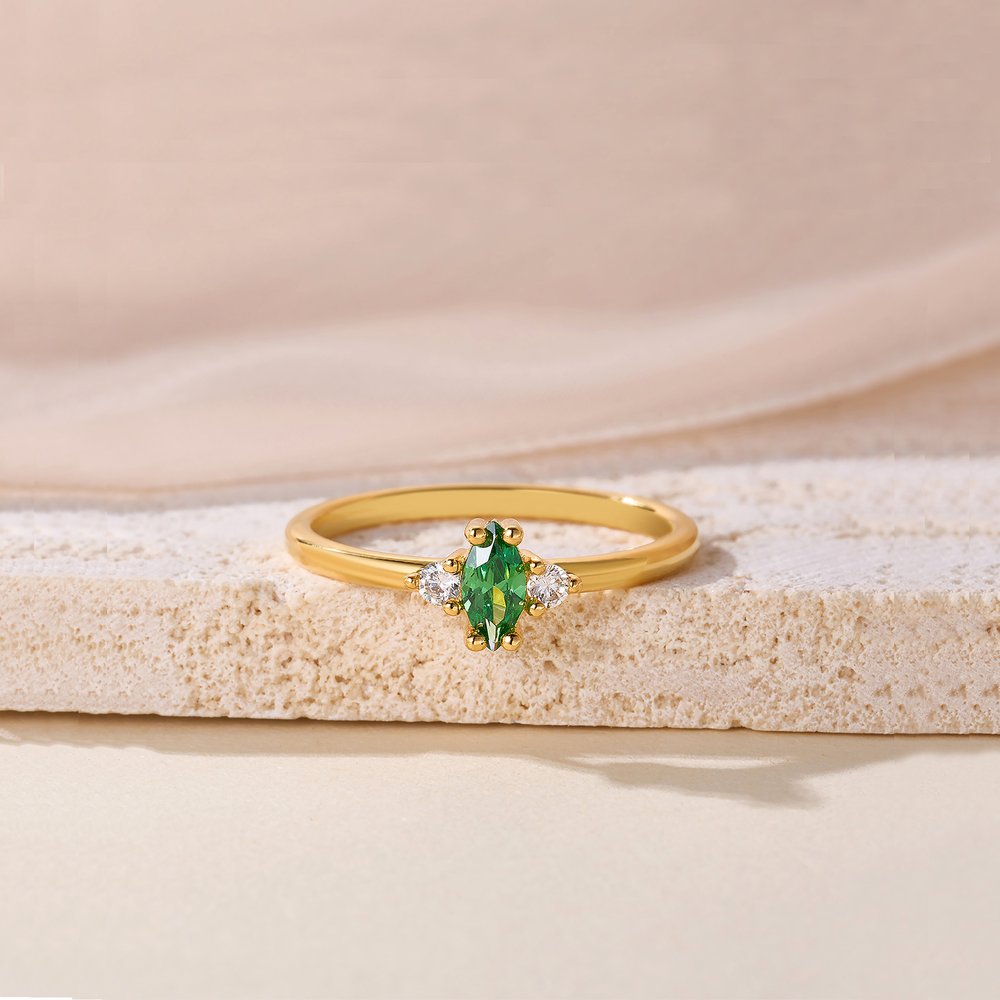 This ring features a horse eye cut center and is adorned with dazzling zircon stones, making it a must-have for any woman who wants to add a touch of charm and radiance to her style. Customize with your exclusive birthstone to celebrate your birth month. The olive-shaped gemstone has a delicate contour that can elongate your fingers, adding a touch of retro charm to your appearance.