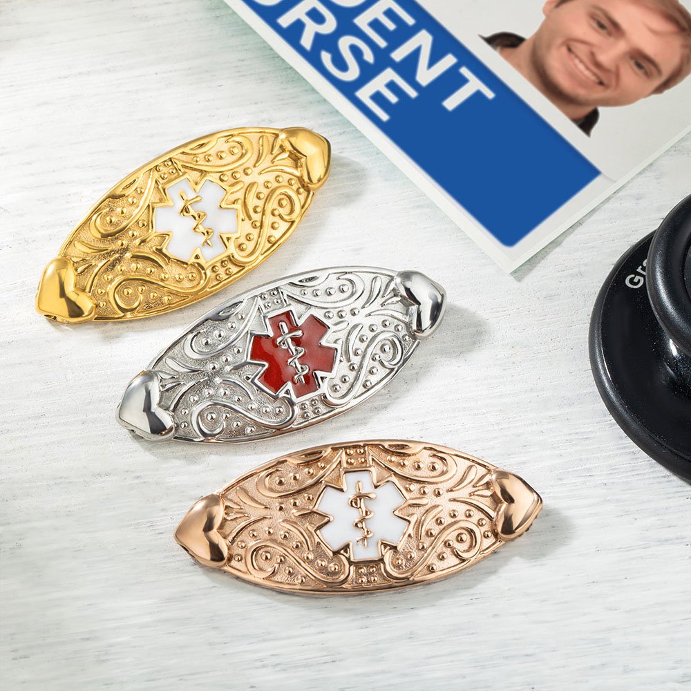 It features a multi-layer design that gives it a modern, trendy look. The layers stack together beautifully, creating a piece of jewelry that is as fashionable as it is functional. Whether you're wearing it to the hospital, for a walk, or at a social gathering, it's bound to turn heads.