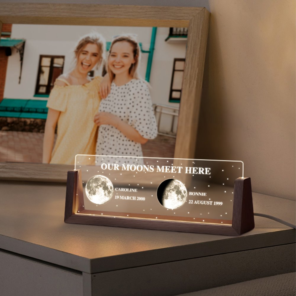 Personalized Moon Phase Wooden Base Acrylic LED Night Light with Name and Date Desk Decor Birthday Gift for Family Friend