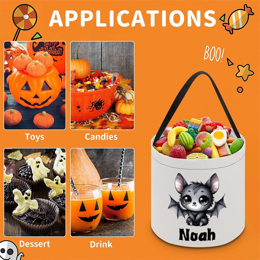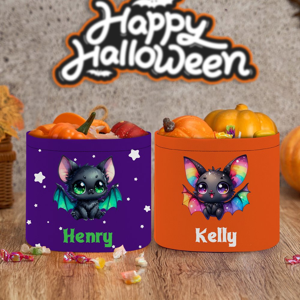 This candy bucket comes with 18 adorable and fun bat designs to choose from. You can also add a starry background to enhance the mysterious and joyful Halloween atmosphere. The bucket can be customized with your name and a color combination, giving each child their own "Trick or Treat" kit, which eliminates confusion and enhances participation.