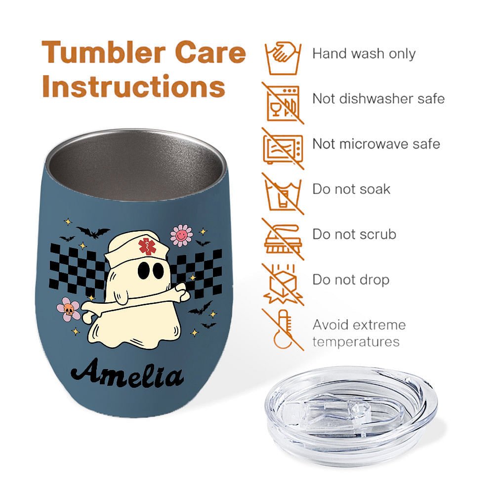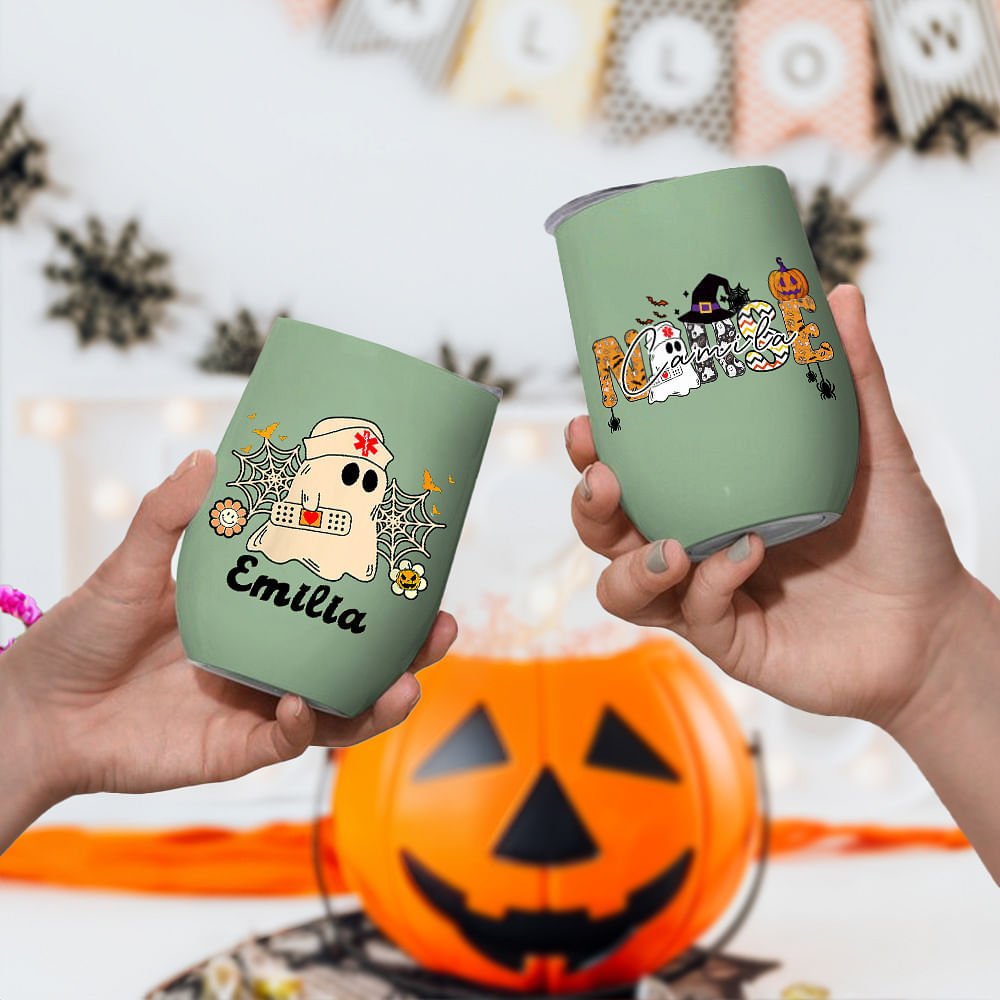 This tumbler uses the cute Halloween ghost nurse element and the Halloween theme "NURSE", two different styles of patterns for you to choose from, you can also design the name to make it more special.