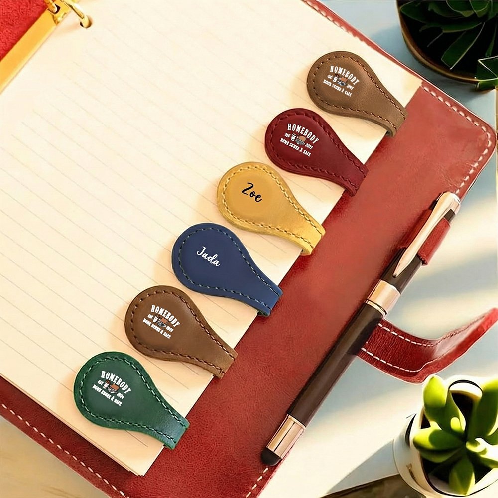 This magnetic bookmark features a distinctive hourglass shape, paired with a multicolor PU leather finish. You can customize with a personal name. The magnetic closure and sleek teardrop profile fit snugly on pages without slipping, making every detail a statement of reading ritual and personal style.