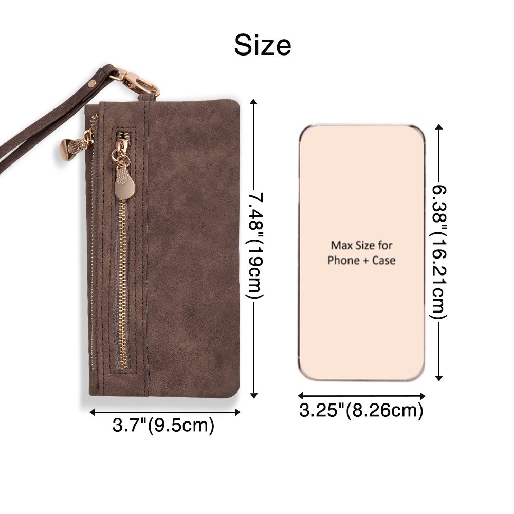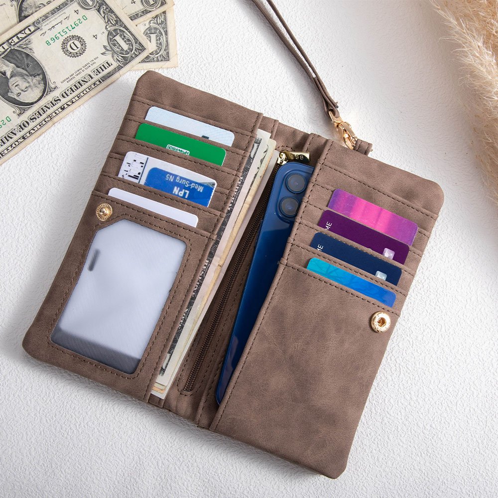 These wallets are not only stylish but also highly functional. With 1 ID Windows, 11 Card Slots, 4 Cash Compartments, 1 Phone Pockets, and 2 Zipper Pockets, it can carry your phone, cash, cards and receipts, ID cards, etc. The attached wristband adds a practical element, allowing for easy carrying and providing an extra layer of security.