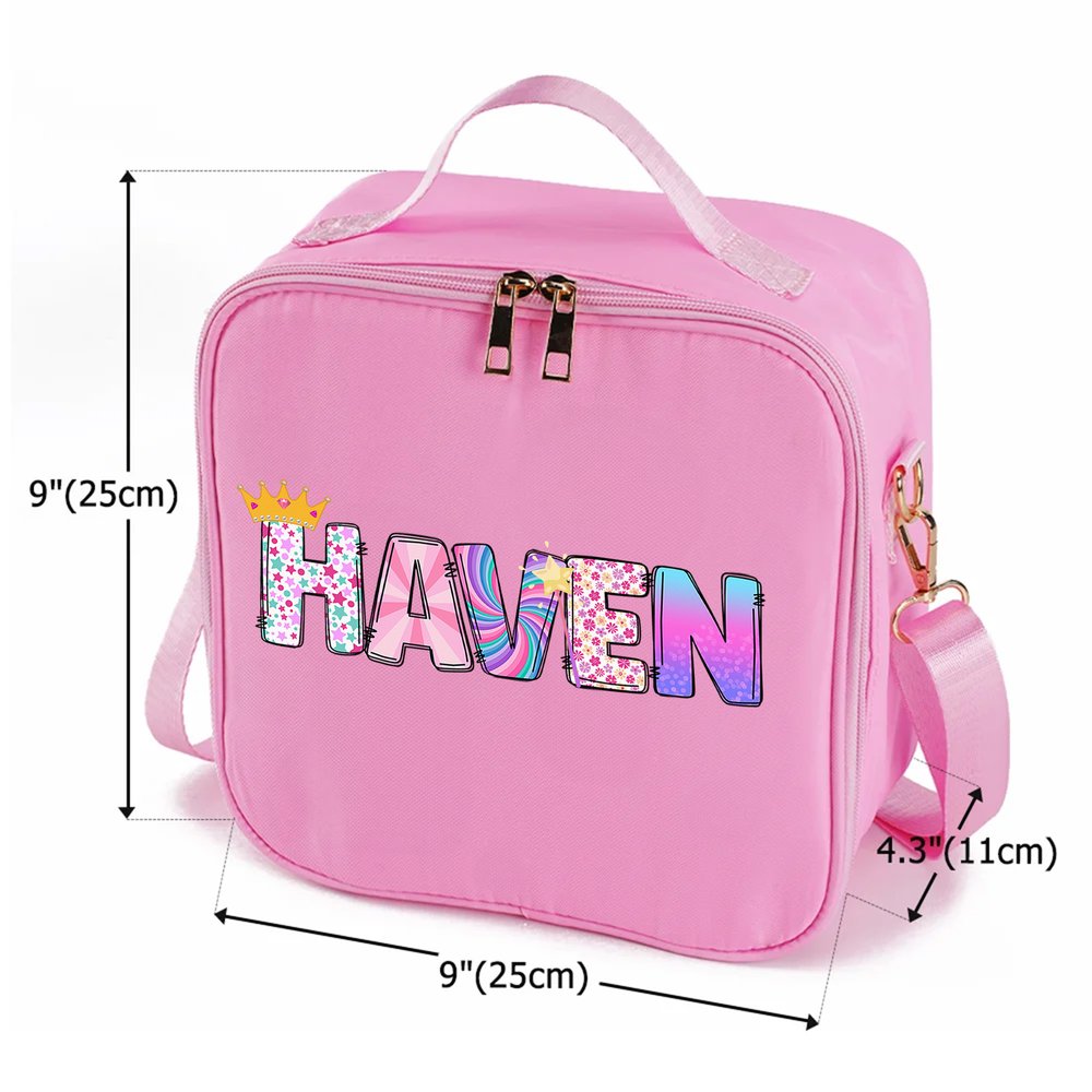 This lunch bag features a personalized name design, proudly showcasing your child's individuality. With 5 vibrant font styles to choose from, each design bursts with color to help your little one stand out at school. Additionally, choose from 4 lunch bag color options to create a truly one-of-a-kind keepsake that matches their unique style.