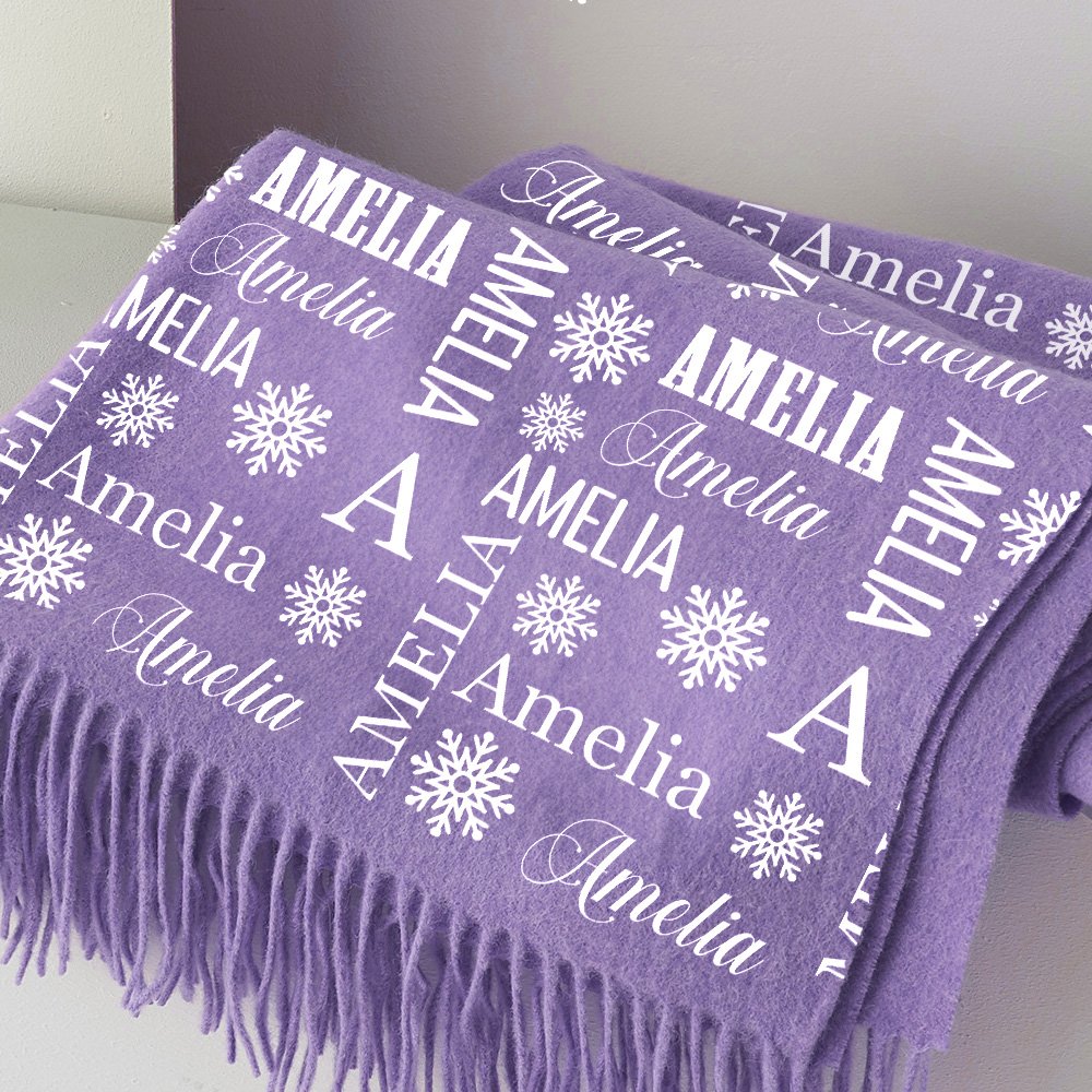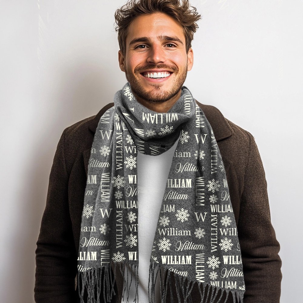 This word cloud scarf is available in a variety of colors and features a name and initial combination. The snowflake pattern adds a festive touch and is both a fashion statement and a personal keepsake. This customization ensures it reflects the taste of the recipient.