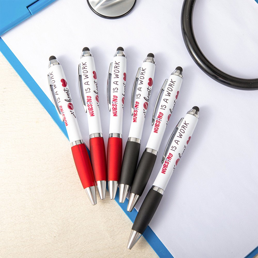 Available in red and black, the pen caters to individual tastes. It's adorned with the phrase "Nursing is a Work of Heart," reflecting the noble essence of nursing. This simple yet elegant text design perfectly fits the pen's body, underscoring the love and dedication inherent in the nursing profession.