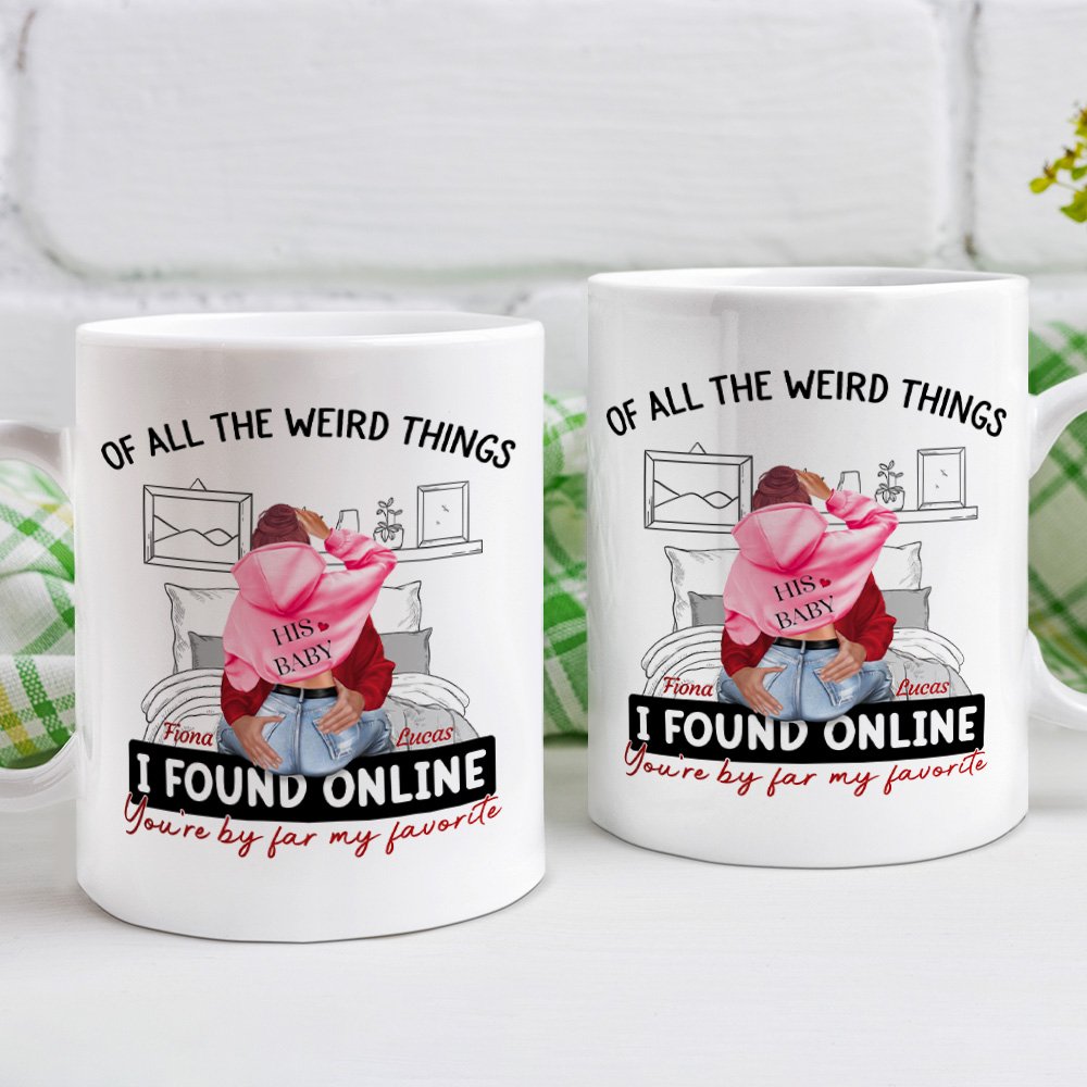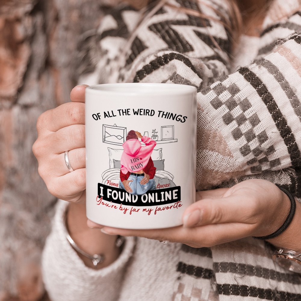 This mug can be customized with your lover's name. What's more, you can customize the cartoon image of you and your lover. The message "Of All The Weird Things I Found Online You Are By Far My Favorite" is printed on the mug, making it a perfect souvenir to commemorate your companionship and love, and it deserves to be cherished.