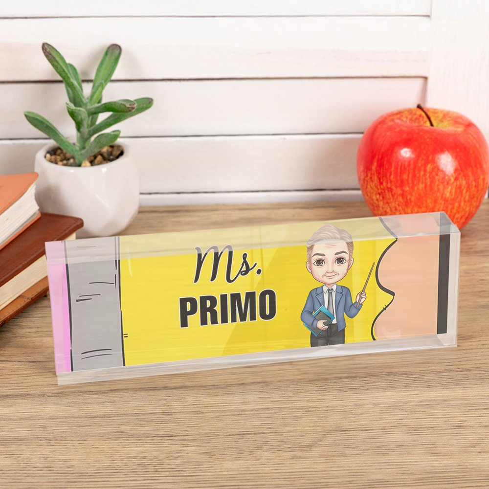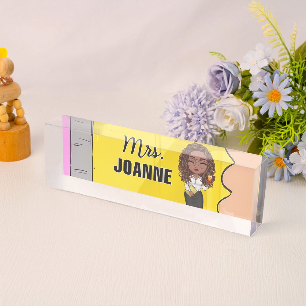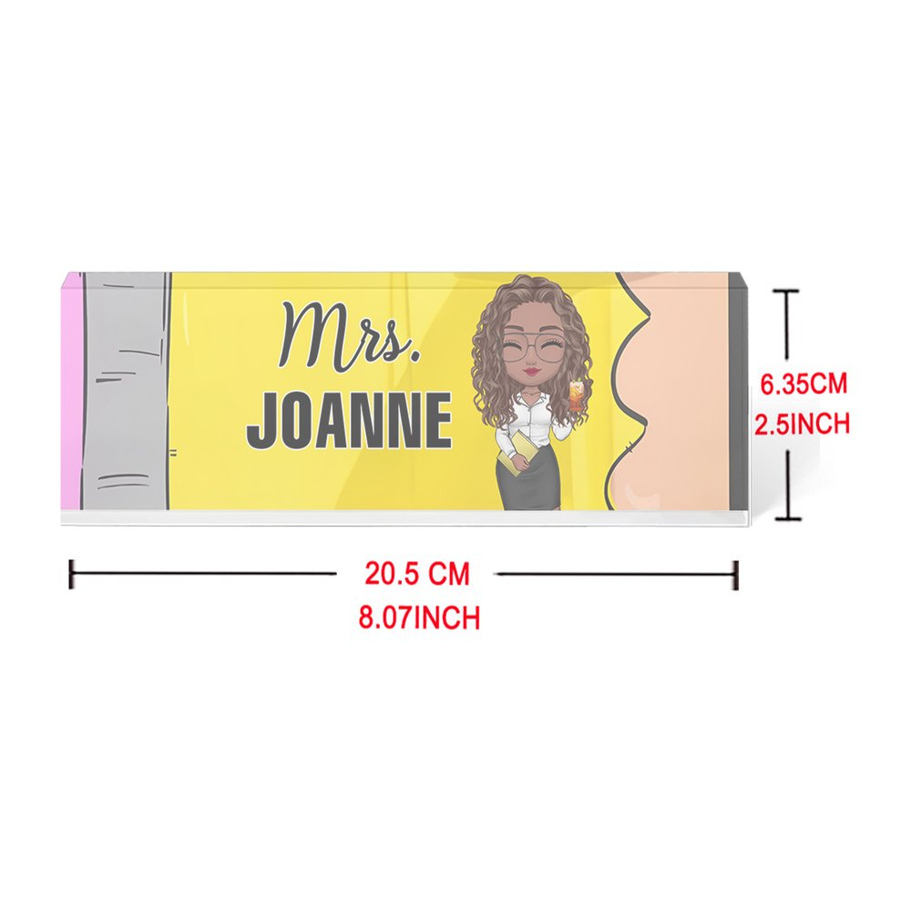 Features a delightful cartoon teacher representation that can be personalized to match the recipient's characteristics. The artistic illustration captures the essence of teaching with a playful and professional touch. The customizable elements include hairstyle, outfit, and teaching accessories. Perfect for creating a unique and personalized tribute to educators.