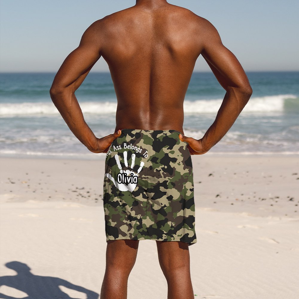The highlight of this pair of men's beach shorts is the girlfriend/wife's palm print pattern, with the text "This Ass Belongs To", which clearly shows the sense of exclusivity and makes the wearer easily become the focus on the beach.