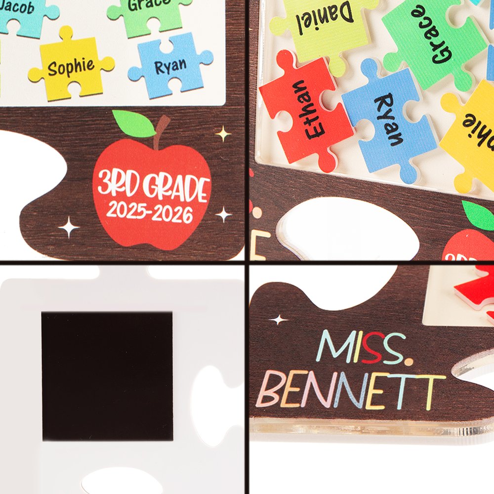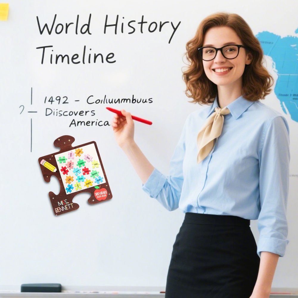 Celebrate and honor the incredible teachers in your life with our beautifully personalized teacher puzzle refrigerator magnets. They serve as perfect end-of-year gifts, tokens of appreciation, or everyday expressions of gratitude, conveying heartfelt thanks to teachers. This creates a memorable keepsake that commemorates special moments in education.