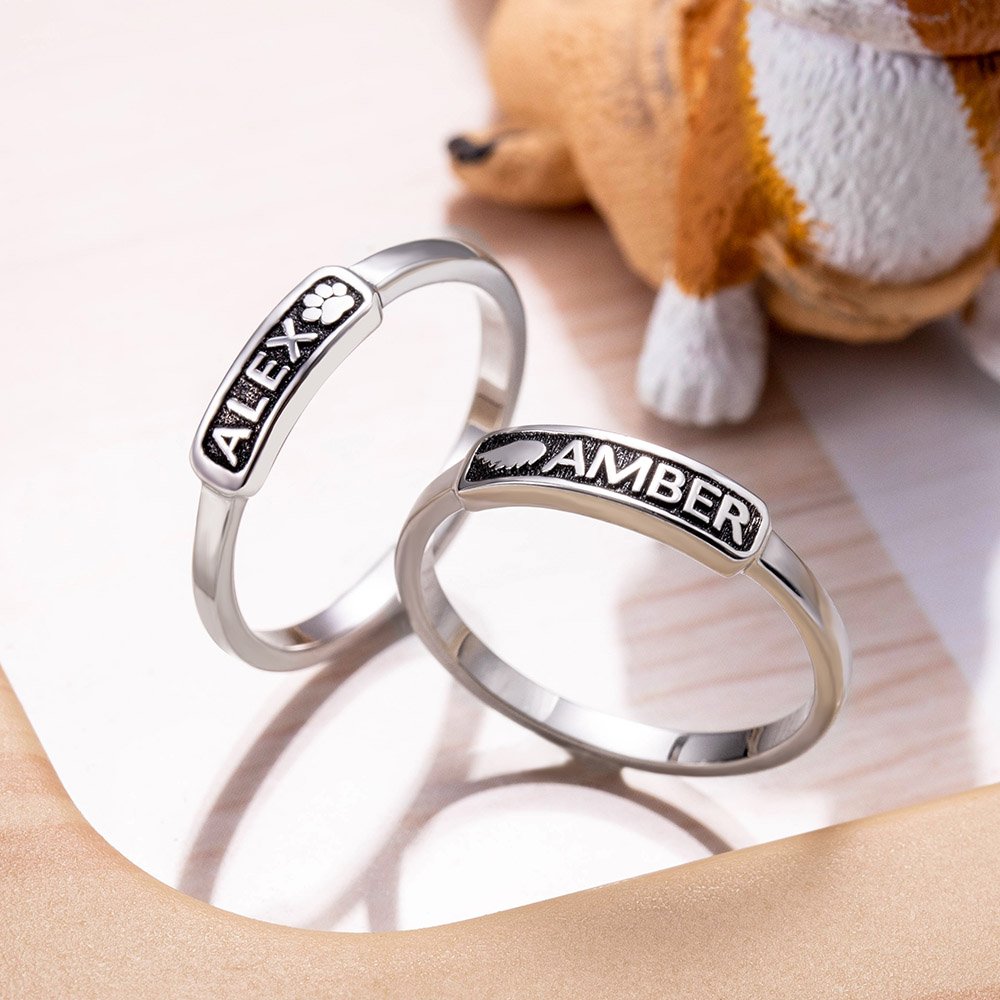 Crafted from high-quality brass or sterling silver, this ring promises durability and comfort for everyday wear. The meticulous engraving process results in clear and detailed designs, ensuring that your pet’s name and accompanying symbols stand out beautifully. The timeless appeal of sterling silver guarantees that this piece will not only last but also remain vibrant through the years.