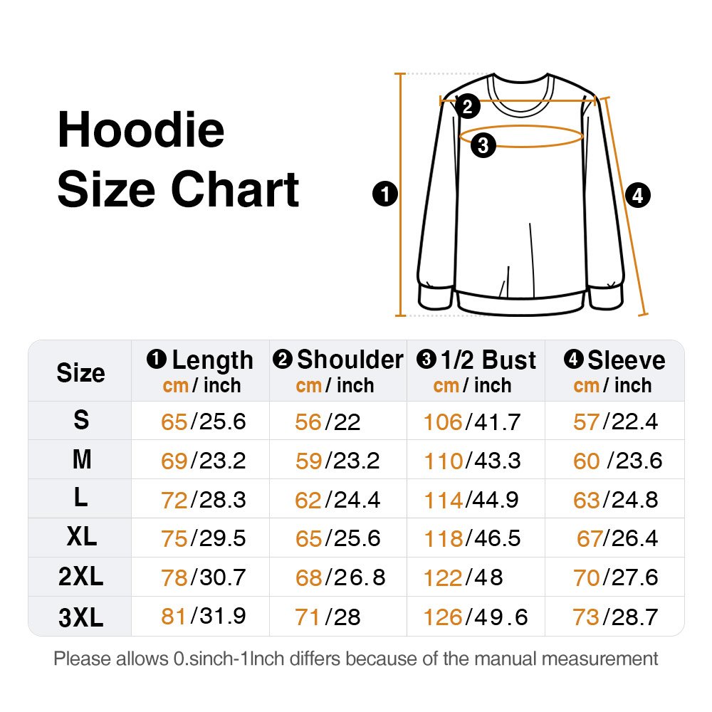 Measurement: Sweatshirt Size: S, M, L, XL, XXL, XXXL Hoodie Size: S, M, L, XL, XXL, XXXL