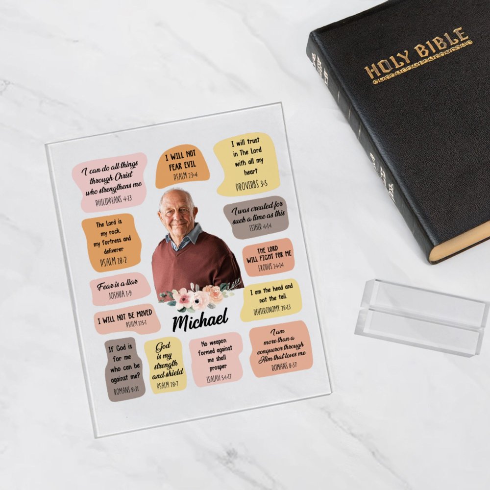 With carefully selected Christian Bible verses at its core, the plaque features a dignified and elegant design that conveys spiritual strength and comfort. Customizable with photos and names, the plaque skillfully blends the sacred words with personal connection, creating a one-of-a-kind, deeply meaningful visual artwork of faith.