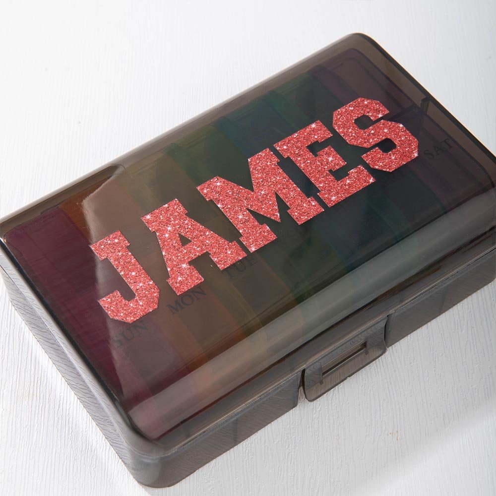 This medicine box adopts a rainbow-colored design with a customized name, adding a simple and vibrant beauty. Featuring each weekday (Mon-Sun) reminder along with morning and evening icons, it makes daily medicine management more effective. We offer 2 box colors, clear and black, and 28 font colors for you to purchase based on your preference. With 6 font styles, you also can choose the one that perfectly matches your style.
