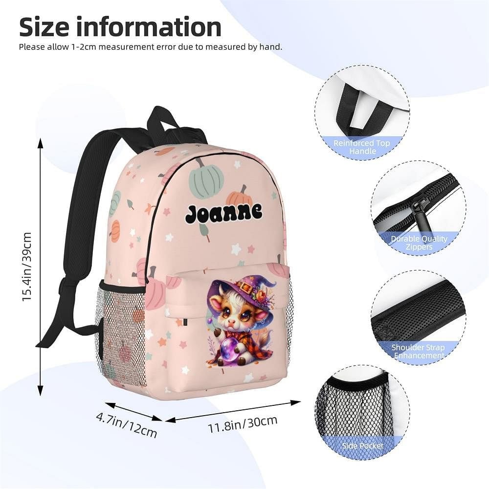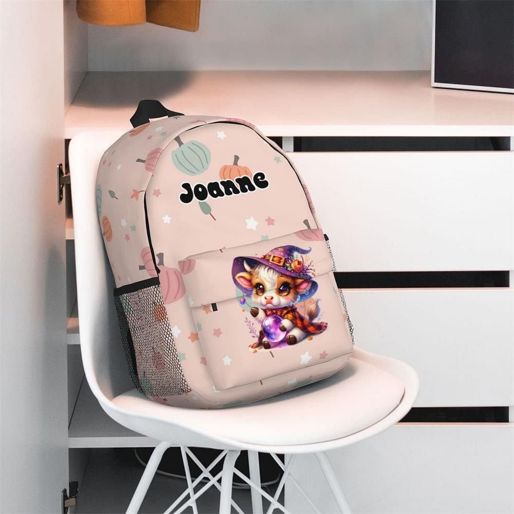 This backpack is inspired by Halloween and cleverly incorporates the image of a highland cow baby. It not only retains the mystery and fun of traditional Halloween but also adds cute cartoon elements, allowing children to become the most dazzling focus in the festive atmosphere. The child's name can be personalized to make it a truly special and unique item.