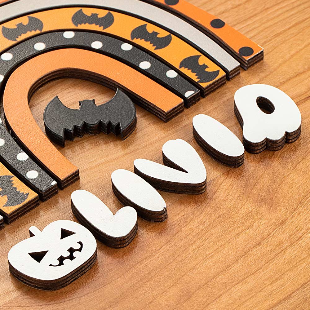 • Rainbow Name Sign: personalized custom wooden rainbow-colored child name decoration pendant, six rainbow color styles to choose from, bright rainbow, blues, pinks, Mermaid, Halloween, American. The size of the product is 5 inches thick, 9 inches wide, 11 inches high, with a hanging jute rope, which can be hung anywhere in the home.