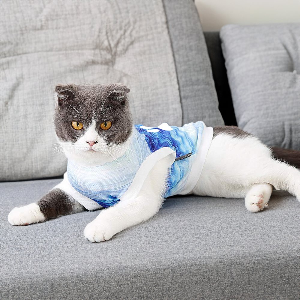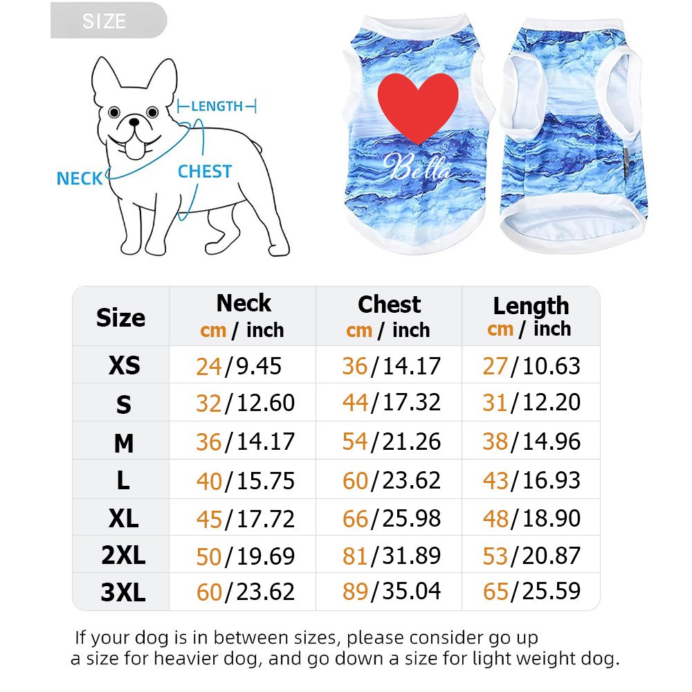 Designed with pets' summer cooling needs in mind, this suit cleverly incorporates playful patterns like playful hearts, adorable paw prints, and bones, creating a lively and pet-inspired design. Customizable pet names are also available, creating a unique style that's both functional and memorable.
