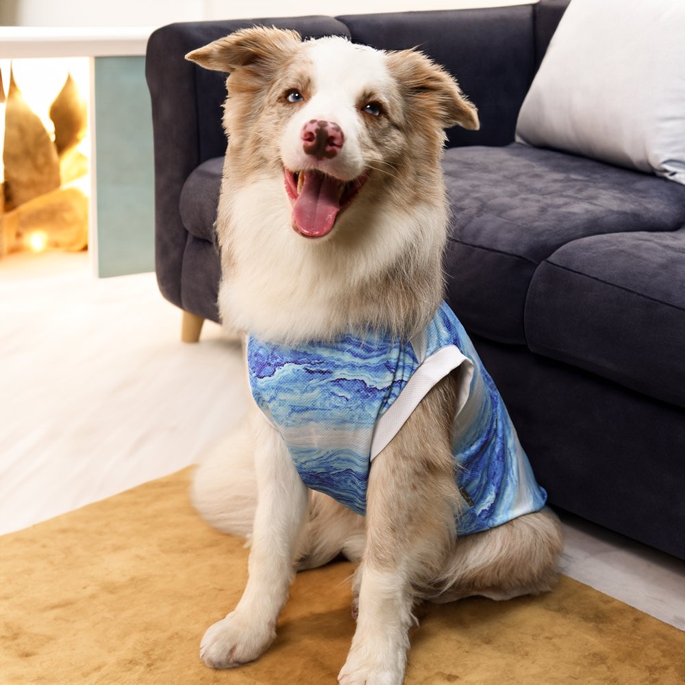 Made from high-quality cooling fabric, it effectively helps pets stay cool in hot weather. The garment's meticulous craftsmanship and secure seams prevent unraveling, ensuring durability.