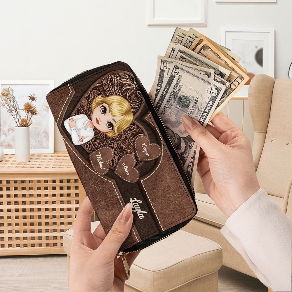 This is a retro women's wallet that can be customized with the names of the mother and 1-8 family members. It has a lychee pattern and many heart patterns, the whole design is both retro and fashionable. 8 wallet colors are available.