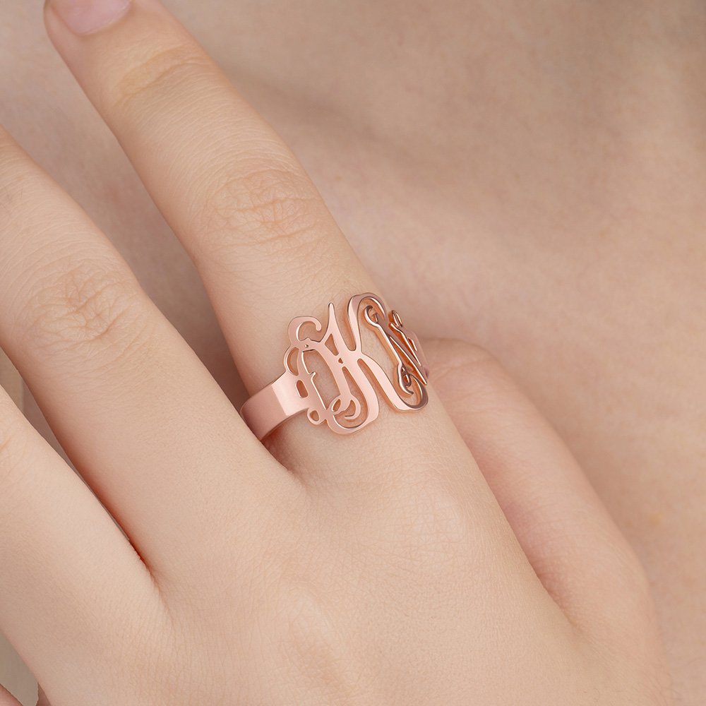 This personalized letter ring is a stylish accessory that is perfect for everyday wear and formal occasions. Customizable with up to three letters, the intertwined letter design features a vintage vine font, making it a striking choice for any woman.