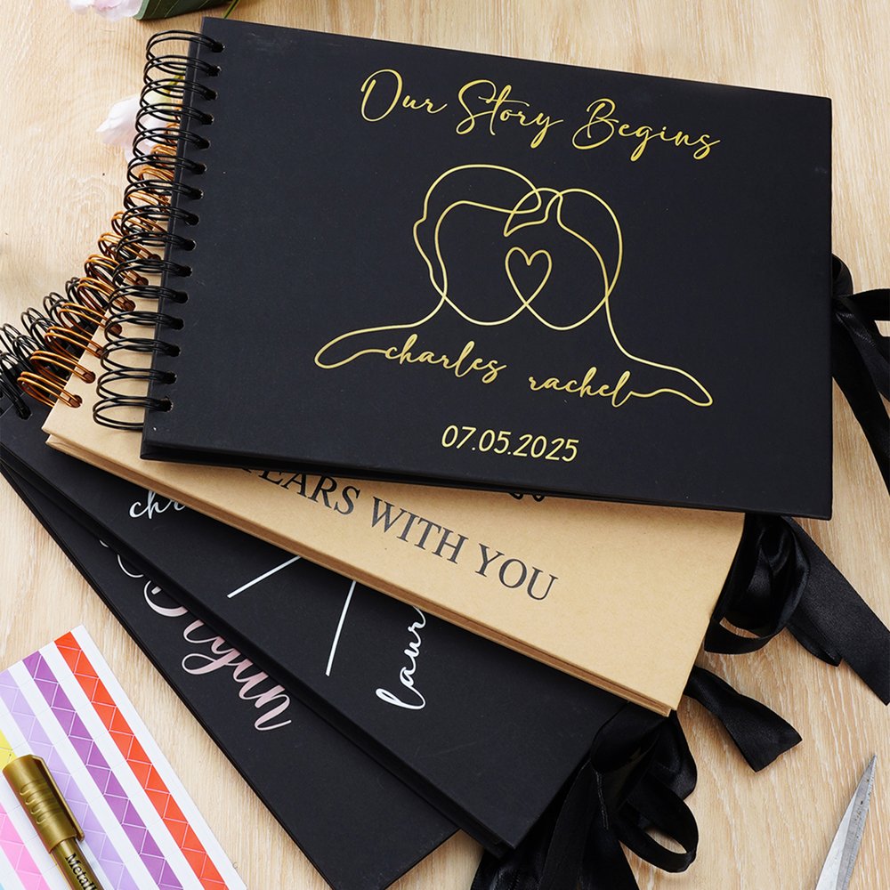 This couple's album features a romantic line art design, symbolizing the essence of love stories. Each scrapbook cover showcases a natural texture and warm touch, perfect for recording your love story and cherished memories. Available in two color options, the cover can be customized with names, text, and dates, adding warmth and significance to your memories, making it a treasured keepsake for a lifetime.