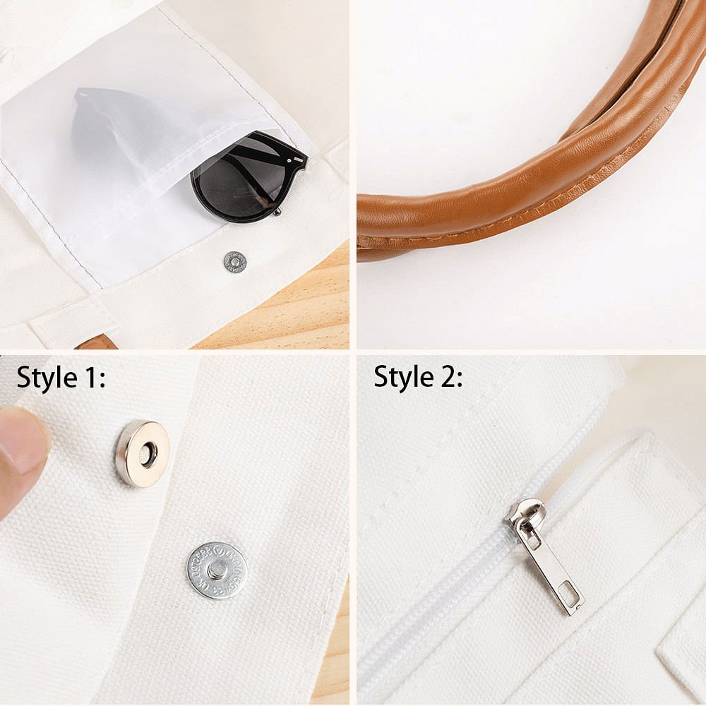 Made from high-quality canvas with a stylish beige tone, this tote features durable PU leather handles for added comfort and a premium feel. The combination of natural materials and modern design makes this bag both sustainable and chic, perfect for everyday use.