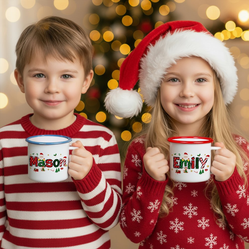 This personalized Christmas enamel mug is a wonderful gift for kids. Great for Christmas gifts, birthdays, or special surprises, it combines practicality with festive, custom details. The personalized name and Christmas design make it a memorable present kids will love using and showing off during the holidays.