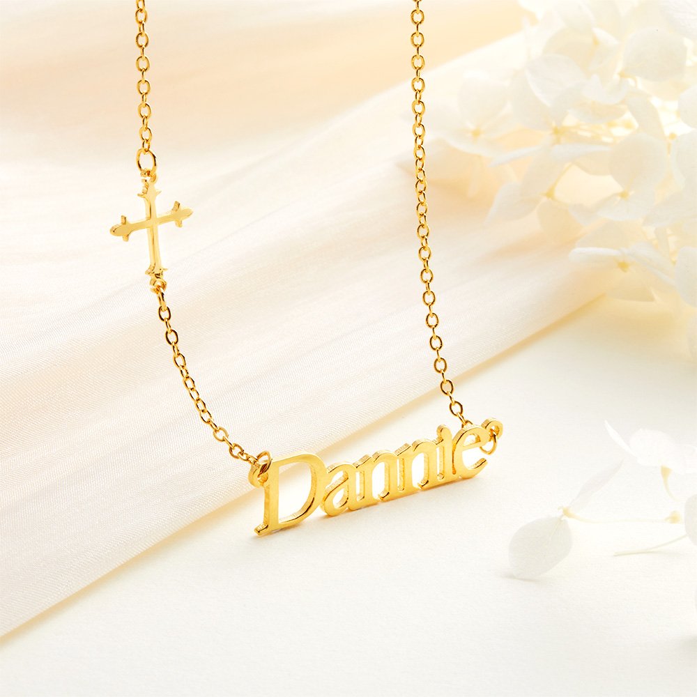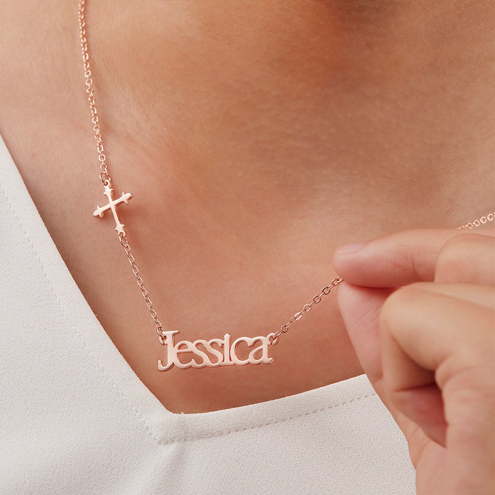 The combination of the cross and name on this necklace pendant holds deep symbolic meaning. It represents not only one's Christian faith but also serves as a reminder of the love and devotion they have for their faith and loved ones.